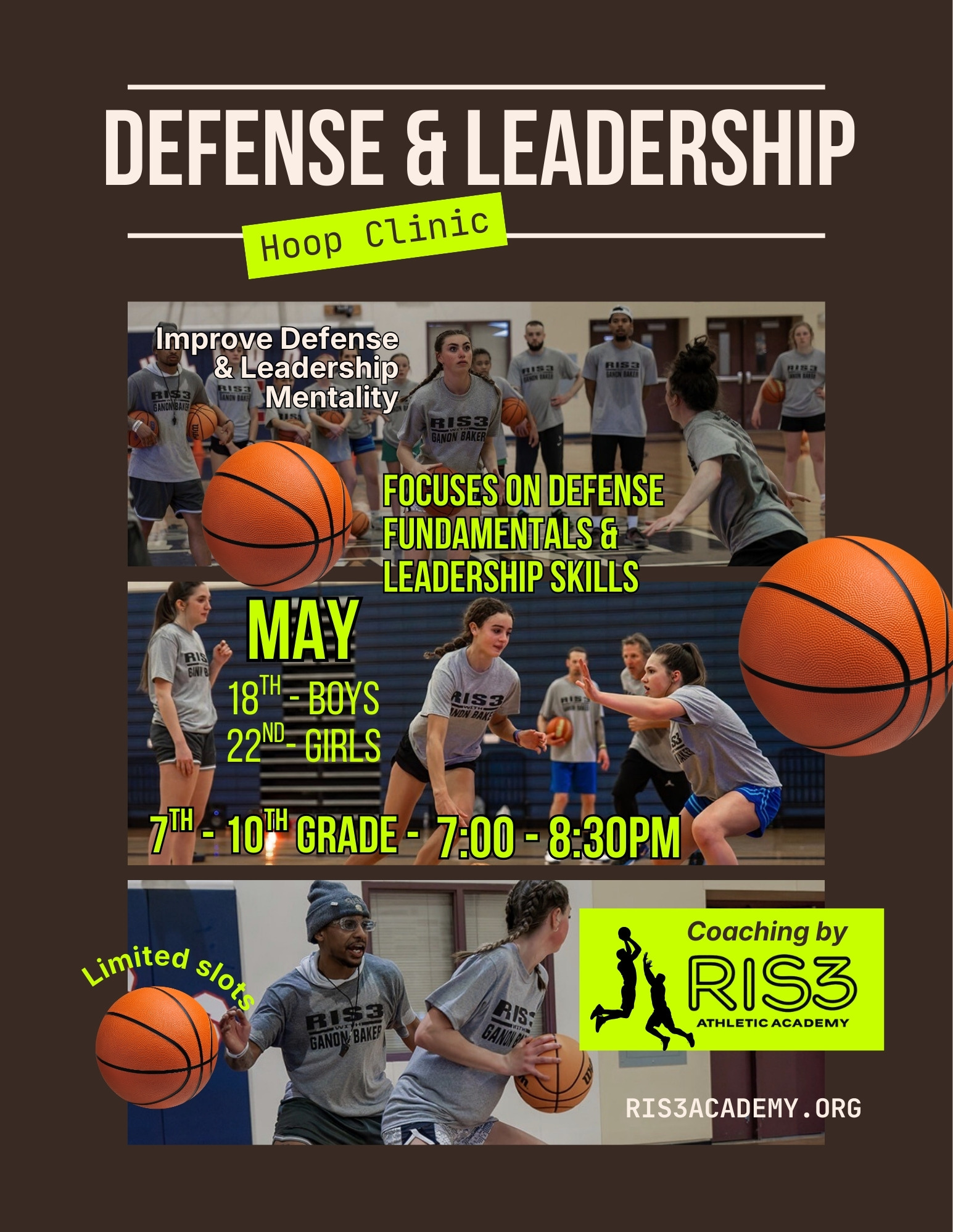 The RIS3 Defensive Development & Leadership Clinic is designed to help athletes become reliable defenders and leaders on and off the court. This clinic focuses on teaching athletes how to guard with purpose, read the game defensively, and lead through effort and communication in real game situations.